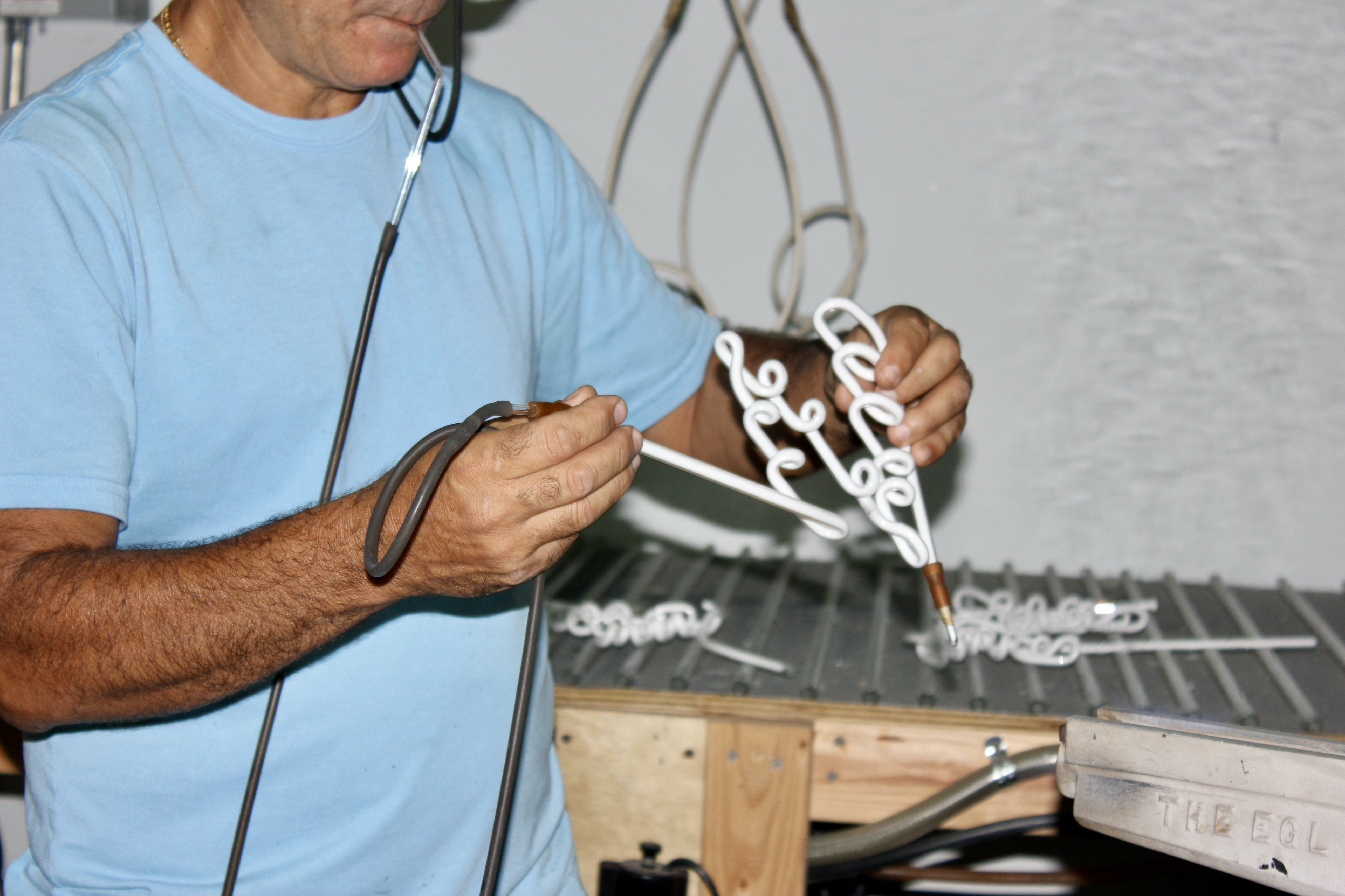 Real neon signs are made of glass and sculpted by hand. All our neon is handmade